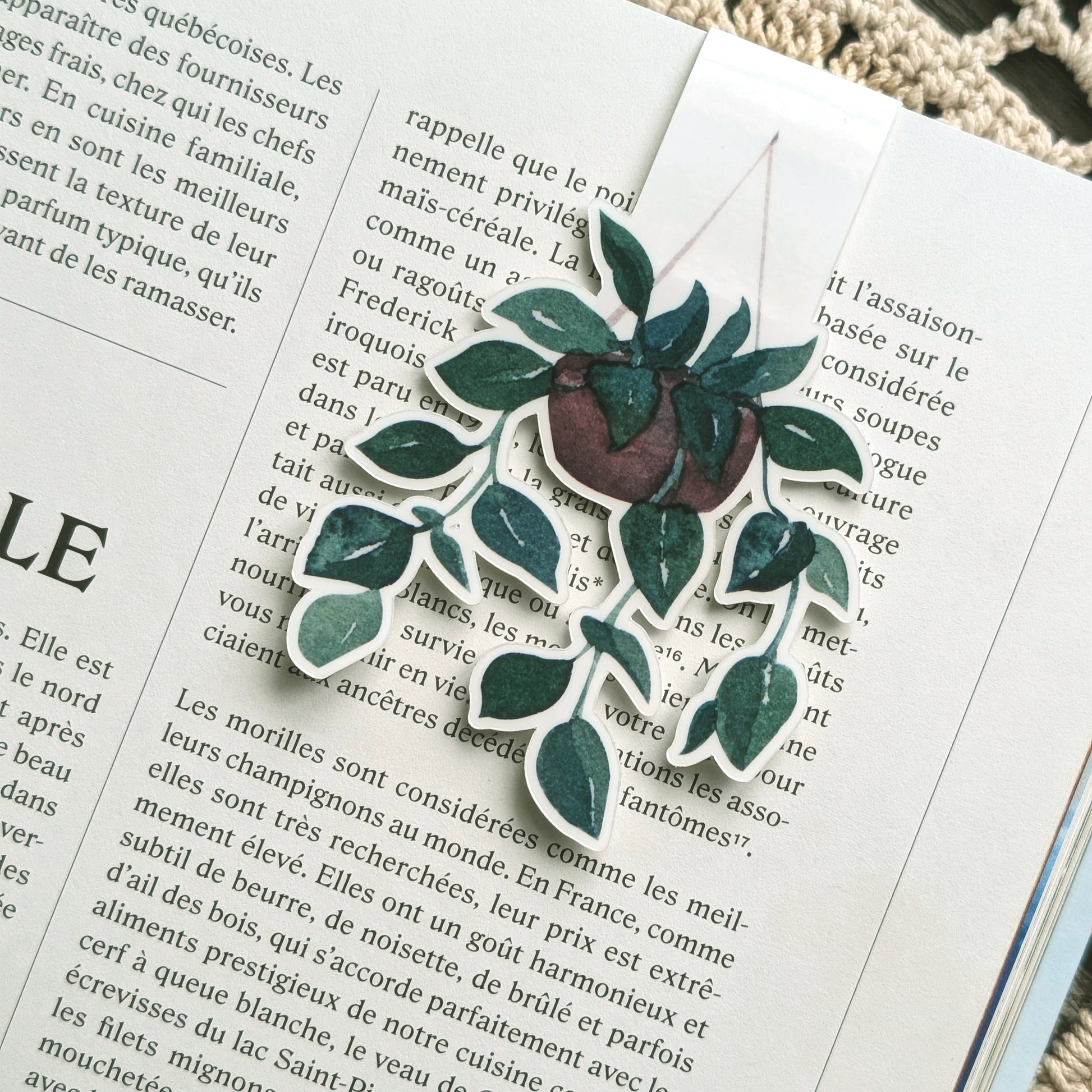 Peint à l'aquarelle par l'illustratrice Oksana Berko, ce signet met en vedette une plante suspendue aux tons verts et terracotta. Recto-verso, pour que la beauté soit visible peu importe comment tu le places.